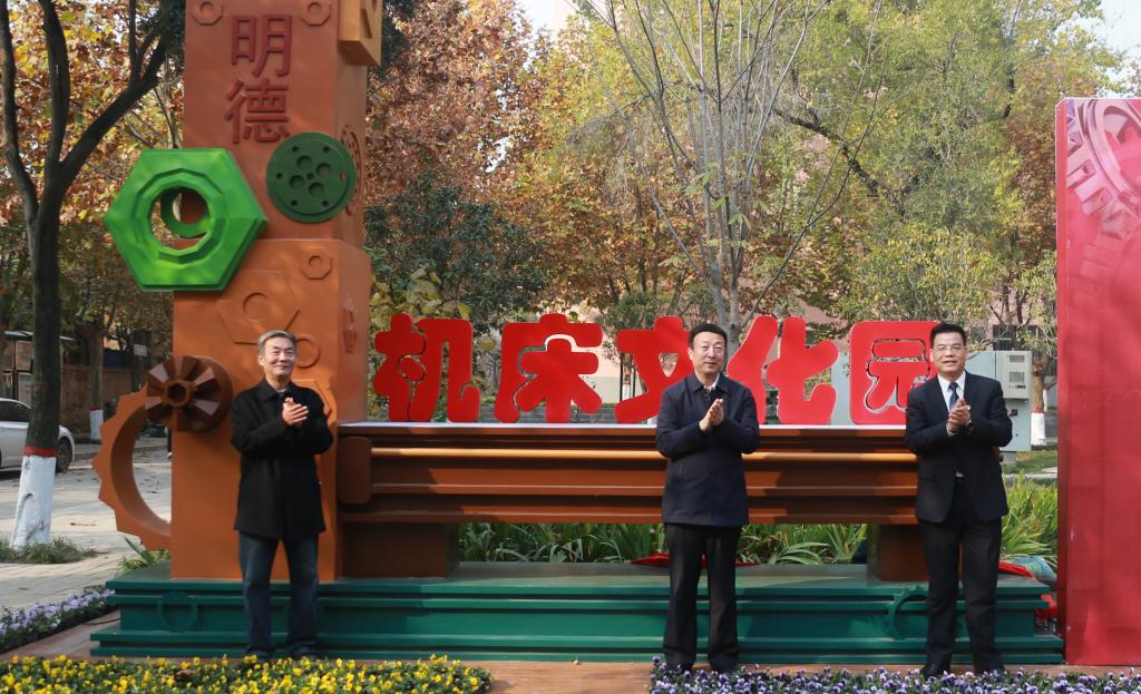 白晓光会长、郭群星局长以及刘永亮校长共同为机床文化园揭幕