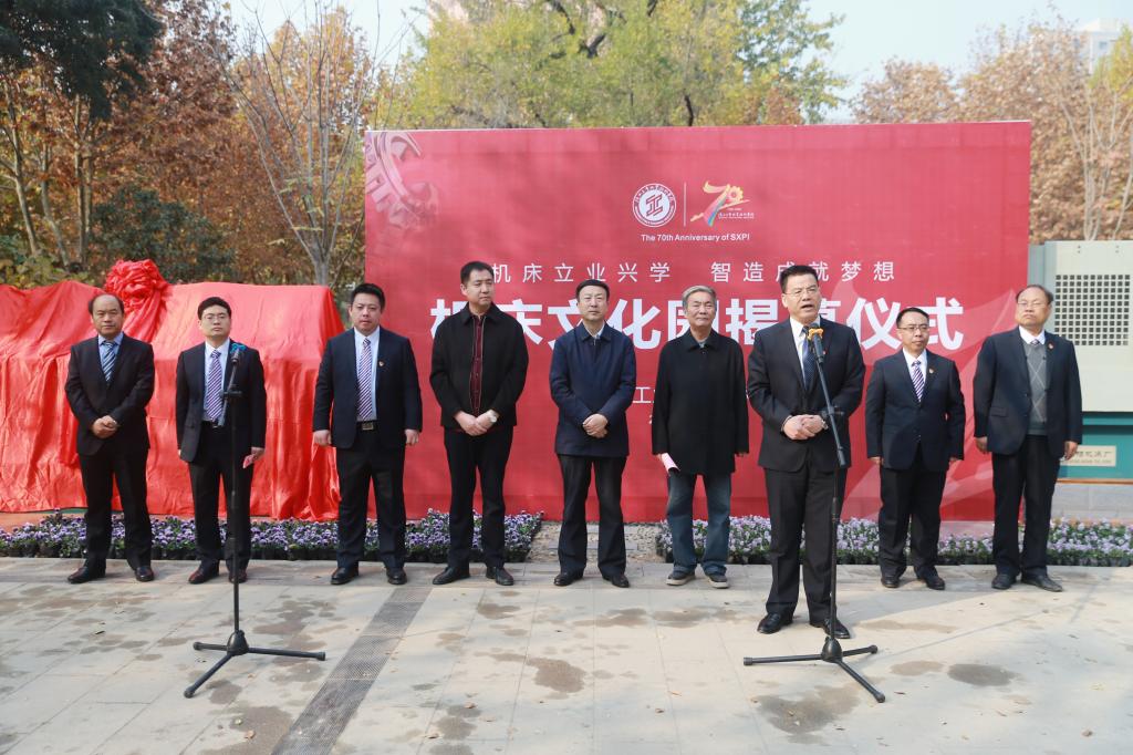 仪式上,校长刘永亮首先代表全校师生对省机械工业联合会、咸阳市文化和旅游局一直以来给予我校建设发展的鼎力支持,表示诚挚的感谢和崇高的敬意。他表示,机床文化园是我校校园文化建设的重要里程碑,也是全校师生为建校70年华诞送上的一份厚礼。未来,学校将持续探索秦地文化、工业文化、产业精神与校园文化的最佳契合点,传承和弘扬工匠精神,展示“双高”校的责任与担当,也期待与省机械工业联合会、咸阳市及社会各界继续携手合作,共同为实现“中国制造2025”蓝图,为培养更多服务中国智造的大国工匠作出更大的贡献。