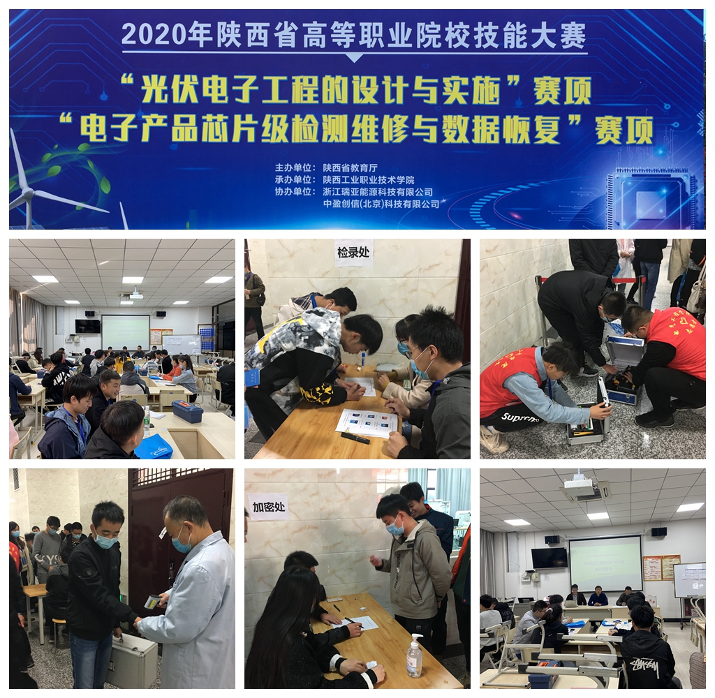 11月7日-8日,由省教育厅主办,乐游棋牌承办的2020年陕西省高等职业院校技能大赛“光伏电子工程设计与实施”赛项和“电子产品芯片级检测维修与数据恢复”赛项在精艺楼一楼实训室顺利进行。此次两个赛项分别由浙江瑞亚能源科技有限公司和中盈创信(北京)科技有限公司技术支持,“光伏电子工程设计与实施”赛项共有来自西航职院、陕国防职院、宝鸡职院及乐游棋牌等4所高职院校的8支代表队参加比赛,“电子产品芯片级检测维修与数据恢复”赛项共有来自西航职院、陕西国防职院、西职院、咸阳职院及乐游棋牌等11所高职院校的20支代表队参加。