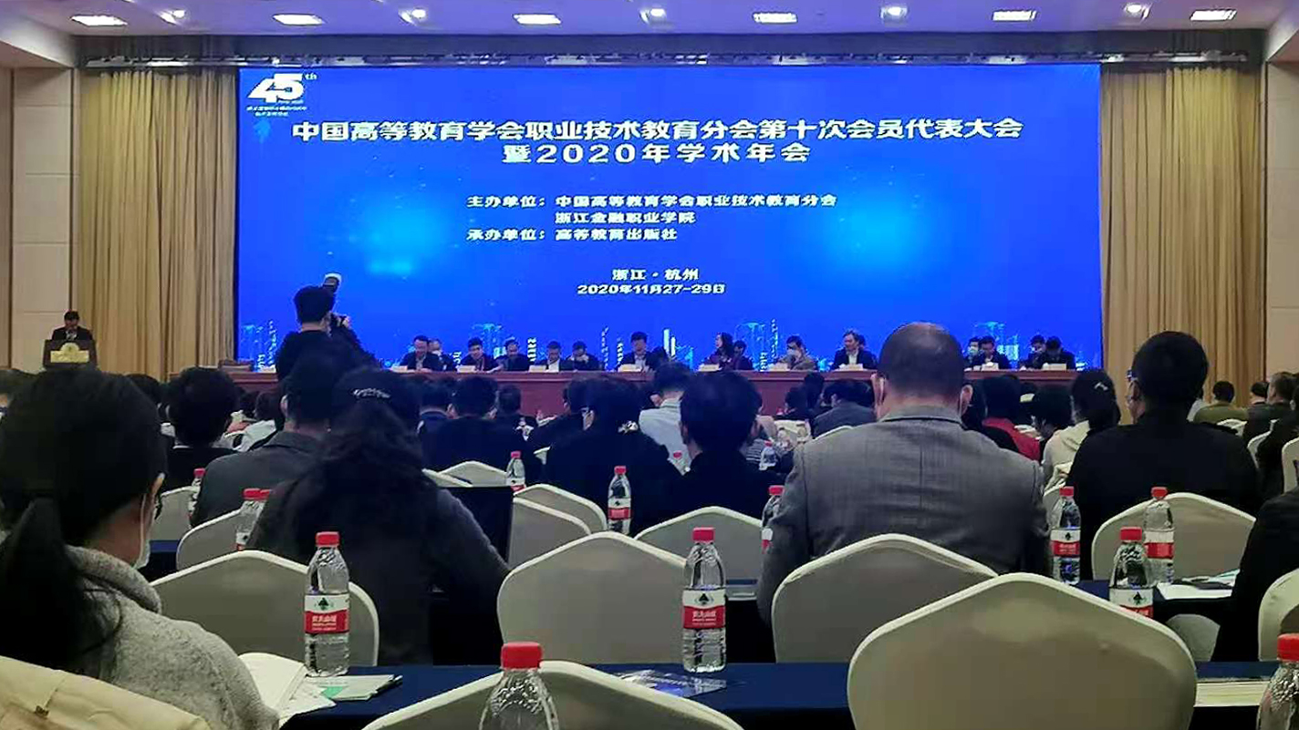 11月27日至29日,由中国高等教育学会职业技术教育分会、浙江金融职业学院主办,高等教育出版社承办的中国高等教育学会职业技术教育分会第十次会员代表大会暨2020年学术年会在浙江省杭州市召开,教育部职业教育与成人教育司副司长谢俐出席并作专题报告。作为分会副理事长单位,乐游棋牌党委书记惠朝阳受邀参加了会议。