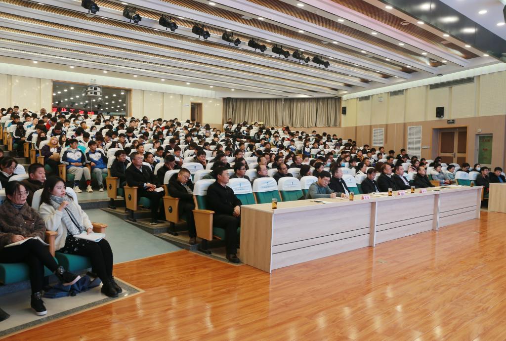 王秦丰教授从什么是国学、怎样学好国学经典、怎样读懂国学概念以及国学与文化自信的关系四个方面,深入浅出,引经据典地向师生阐述了国学的源远流长、博大精深。他向师生们详细介绍了《老子》、《论语》、《孟子》、《大学》、《中庸》等国学经典包含的主要内容,讲述了学习这些文化典籍应把握的正确观点,提出了从道、仁、义、礼、智、信、忠、孝、廉、耻等十个概念学习理解国学的基本方法,并从天人合一、中庸之道、整体思维、君子人格等方面讲述了中华文化的优势,教育引导同学们增强文化自信,守住中华民族的精神家园,从中华传统文化中汲取营养,吸收其精华,去除其槽粕,在学习、工作和生活中将中华优秀文化不断发扬广大。