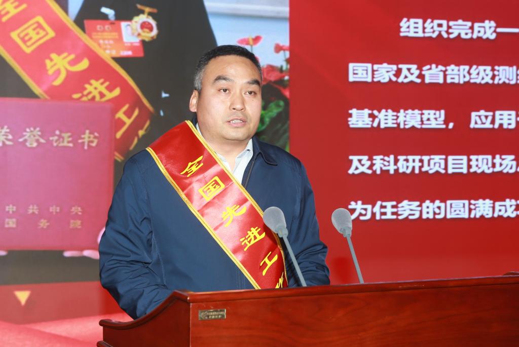 全国劳动模范、全国五一劳动奖章获得者、中铁一局集团城市轨道交通工程有限公司西安地铁指挥部技术负责人梁西军作报告