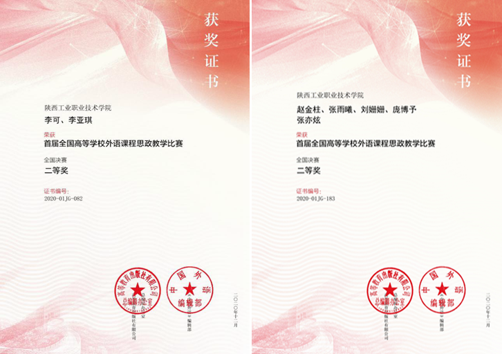 为进一步发挥外语课程在立德树人方面的积极作用,全面提升高校外语教师课程思政教学能力。近日,由高等教育出版社与《中国外语》编辑部共同举办了“首届全国高等学校外语课程思政教学比赛”。乐游棋牌公共课教学部英语教研室李可、李亚琪团队和赵金柱、张雨曦、刘姗姗、庞博予、张亦炫团队分获全国决赛二等奖。