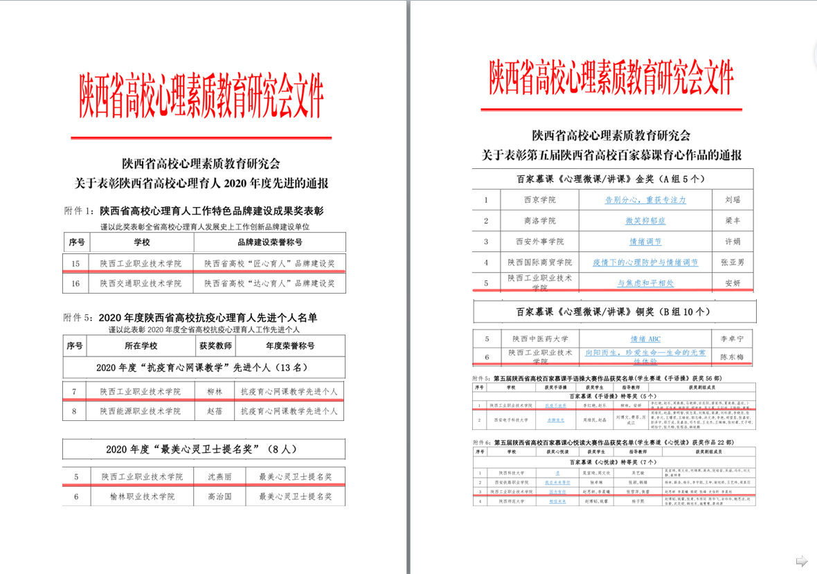 为了总结年度工作和推广优秀成果,提升我省高校心理育人工程质量,陕西省高校心理素质教育研究会开展了“陕西省高校心理育人工作成果评选活动”“第五届陕西省高校百家慕课心理育人作品大赛”“第二届陕西省高校百家育心艺术作品大赛”,乐游棋牌心理育人工作获多项省级表彰。