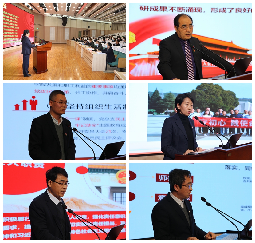 党委副书记、院长刘永亮对各党总支书记的汇报进行了逐一点评,他充分肯定了各党总支工作中取得的成绩,指出各党总支书记述职实事求是,有事例、有数据、有总结、有反思,查找问题比较准确,下一步工作重点突出、考虑比较全面。在肯定工作同时,也指出各党总支书记在抓党建工作中还存在理论武装仍需深化、管党治党仍需从严、思想政治和意识形态工作仍需强化、总支和支部组织力仍需提升、党建引领发展力度仍需加大等问题,他强调,各总支书记要要巩固深化“不忘初心,牢记使命”主题教育成果,始终把政治建设摆在首位、认真履行管党治党主体责任,推动党总支、党支部全面进步、全面过硬,切实加强思想政治和意识形态工作,做好疫情防控和校园稳定安全工作,把党的领导落到学校治理的各个方面各个环节,加快教育治理体系和治理能力现代化步伐,用奋进之笔书写新时代“双高”校党的建设工作新篇章。