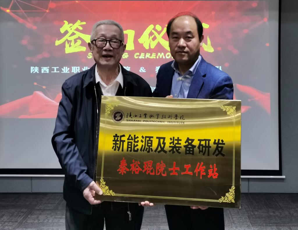 仪式上,梅创社副院长与秦裕琨院士签订了院士工作站设立和首席技术专家聘任协议,并为秦院士颁发了国家高水平专业群首席技术专家聘书。秦裕琨院士为我校“新能源及装备研发秦裕琨院士工作站”授牌。梅创社副院长代表陕西工院向秦裕琨院士团队介绍了我校双高建设情况。秦裕琨院士对国家大力发展职业教育表达了赞赏,对高水平技术技能人才培养表达了高度的关注,并为自己担任国家高水平专业群首席技术专家指导学校专业群建设工作表示了期许。他希望以本次工作站成立及受聘为契机,在科研、成果转化、专业教学和人才培养等方面开展深入合作,为国家装备制造行业发展培养更多更有用的技术技能人才。