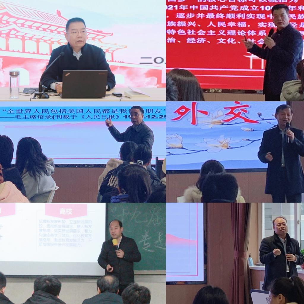 惠朝阳同志以《深入学习领会党的十九届五中全会精神》,刘永亮同志以《扶贫脱困建成小康,向第二个百年奋斗目标奋勇进军》,康强同志以《坚定不移维护和稳定中美关系》,贺天柱同志以《百年未有之大变局下的中国特色大国外交》,梅创社同志以《学习贯彻党的十九届五中全会精神》,刘清同志以《坚决反对和遏制“台独”分裂行径》为题,深入浅出进行了精彩讲授。同学们纷纷表示,希望以后能经常听到这样的课。校领导上思政课,有效拉近了师生之间的距离,体现了学校对思想政治理论课的高度重视。