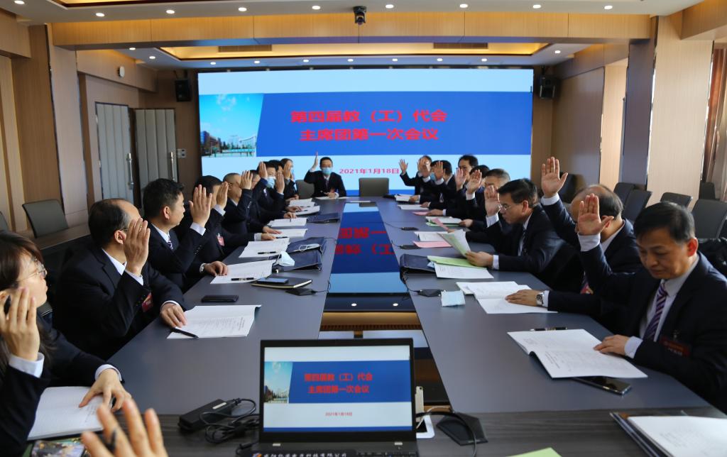 分组讨论结束后,大会主席团在崇文楼九楼第一会议室召开了主席团第二次会议,听取各代表团分组讨论情况汇报,主席团成员一致表决通过了《学院2020年行政工作报告》决议(草案)、《第三届工会工作报告》决议(草案)和《学院2020年财务工作报告》决议(草案)。
