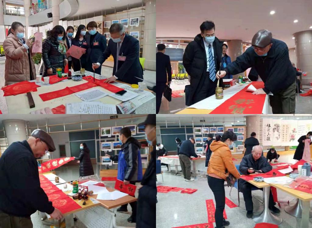活动旨在弘扬中国传统优秀文化,赞美新时代,祝福中国和人民贺新春,营造温馨祥和的美好节日气氛,表达教职工迎新纳福、企盼美好生活的愿景。活动现场,书法见长的教职工铺纸研墨,饱含热情,即席挥毫,一气呵成;行云流水般,一书而就;各种字体一一展现韵味,或遒劲有力,或飘逸隽秀,或龙飞凤舞,或潇洒灵动。“爆竹声声辞旧岁,红梅点点迎新春”传递千年古风;“牛来鼠去远,春到景更新”继承生肖文化;“物华天宝长安乐,人寿年丰大吉祥”“万里鹏程平地起,四时鸿运顺心来”……一幅幅寓意祥瑞的春联和一个个饱含神韵的“福”字被送到教职工手中。顷刻之间,活动现场已成为一片喜庆的红色海洋。备有事先写好的不同尺寸的春联和烫金“福”字向教职工免费发放。教职工们也可自选或自拟春联内容,由书画协会会员现场书写。教职工们一边品评春联寓意,一边欣赏书法艺术,不时地啧啧赞叹,并争先恐后迎“福”到家,喜悦之情溢于言表。
