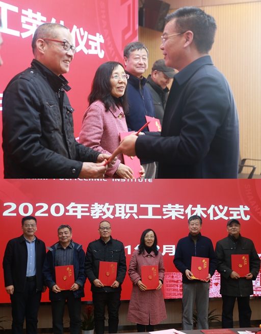 2月4日,我校首次教职工荣休仪式在崇文楼第一会议室举行。学院党委书记惠朝阳、院长刘永亮、党委副书记贺天柱出席了本次仪式,并为到场的荣休教职工颁发证书和纪念品。2020年度退休教职工以及党委组织部、工会、离退休工作处等部门负责人共同见证了这一隆重的时刻,人事处处长殷锋社主持仪式。