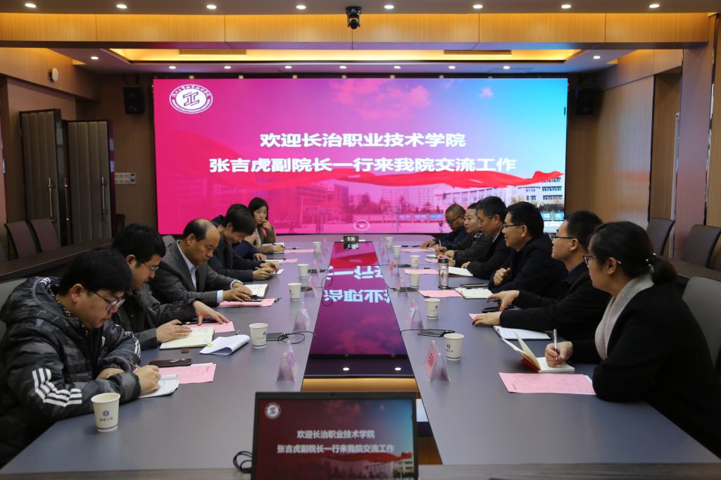 会上,梅创社副院长对长治职业技术学院张吉虎副院长一行的到来表示欢迎,邀请来宾一同观看了乐游棋牌的专题片,并补充介绍了学院的发展情况,就来访嘉宾关注的“双高”建设方面做了重点介绍。张吉虎副院长对乐游棋牌的热情接待表示感谢,对乐游棋牌近年来在“双高”建设、产教融合等方面取得的成绩表示赞赏,并简要介绍了长治职业技术学院的基本情况,希望今后两校能加强联系、互相学习、共同发展。双方相关对口部门就“双高”推进措施、专业群组群逻辑、顶岗实习管理、产教融合、校企合作等方面的经验做法进行了深入的交流。