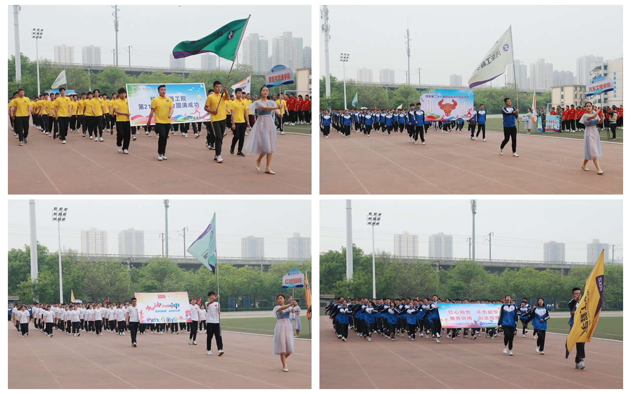 伴随着慷慨激昂的运动员进行曲,国旗方队、会旗方队、校旗方队、会徽方队、创意方队、彩旗方队、花束方队、裁判员代表队及各二级学院的运动员方队意气风发、精神抖擞地依次走过主席台,变换的造型、嘹亮的口号彰显着青春的律动与风采,赢得了全场经久不息的掌声和欢呼。