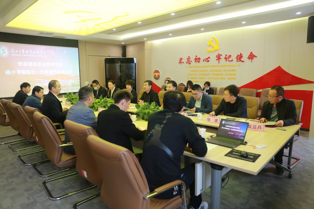 会议开始,双方互相介绍了本次会议的参会人员,并共同观看了我校的专题宣传片。随后,卢文澈处长对杨小学副院长一行人的到来表示热烈欢迎,介绍了学校的发展情况,并就来访嘉宾关注的校企合作情况做了重点介绍。杨小学副院长对我校的热情接待表示感谢,并简单介绍了潞安职业技术学院的发展概况及校企合作情况,希望今后两校能加强联系、互相学习、共同发展。会议最后,双方相关对口部门就学院建设、校企合作工作的推进等方面进行了深入的互动交流。