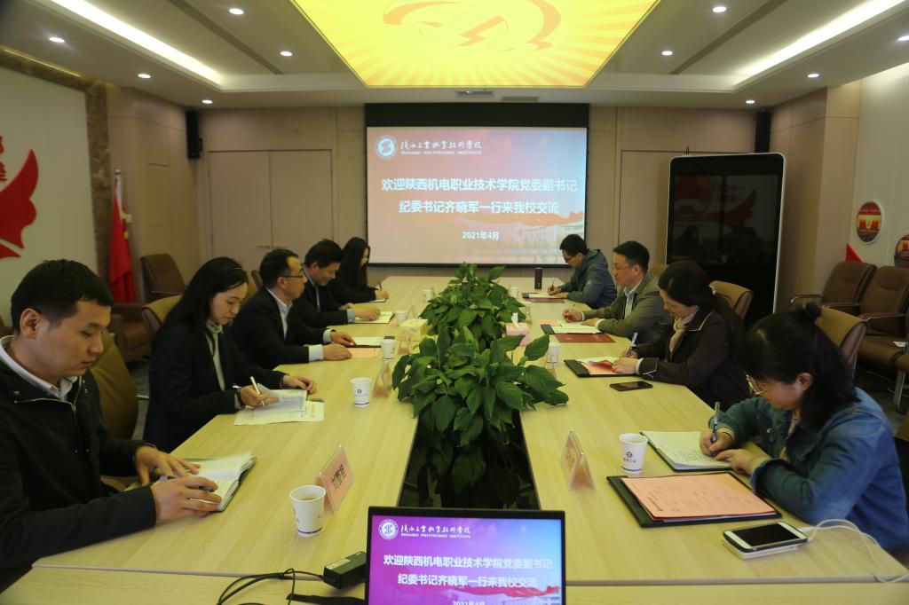 4月27日下午,陕西机电职业技术学院党委副书记、纪委书记齐晓军一行4人来我校交流工作。学院党委副书记、纪委书记康强与来访嘉宾进行了交流座谈。座谈会由康强主持。