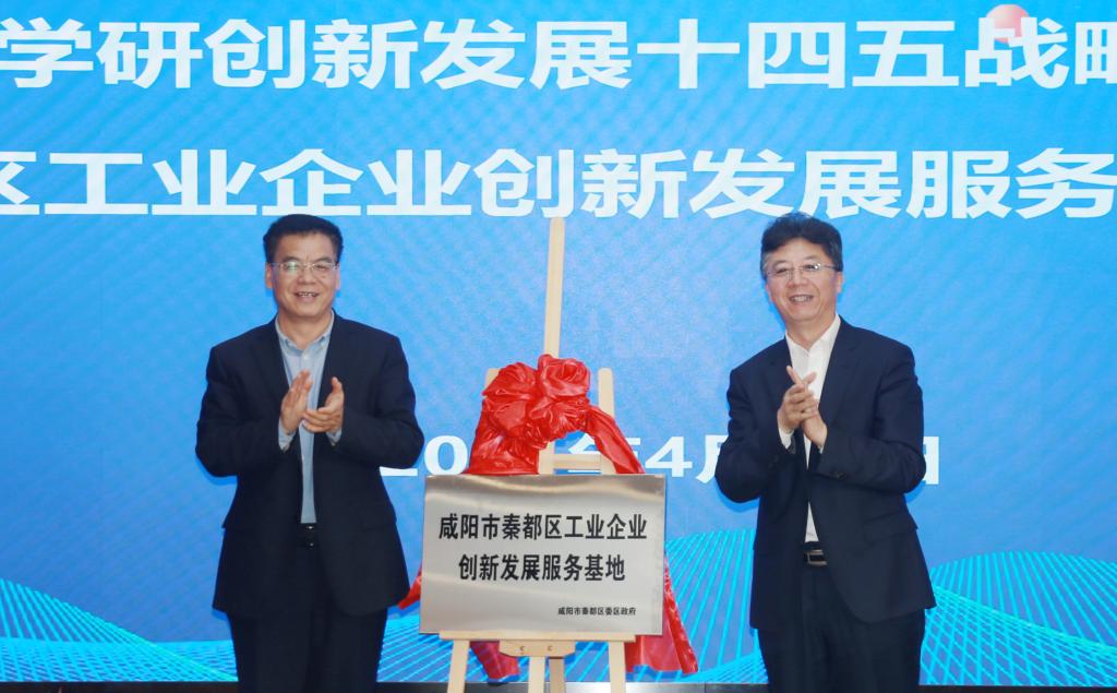 区委书记谢军与刘永亮校长为共建秦都区工业企业创新发展服务基地揭牌