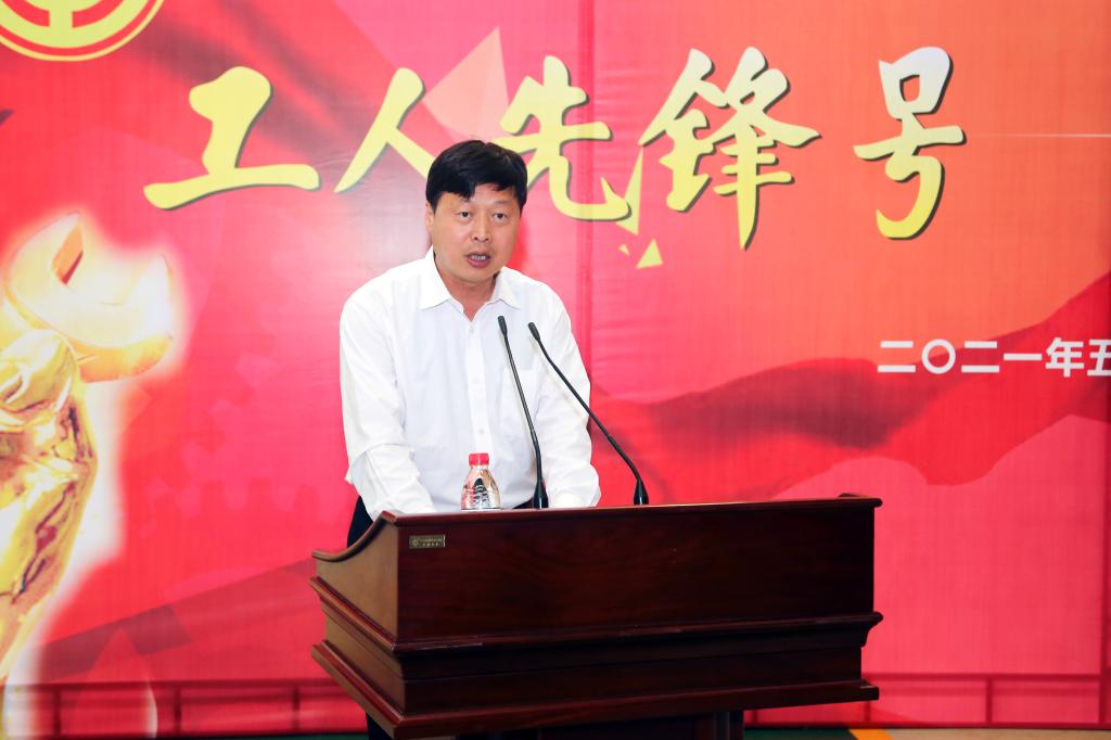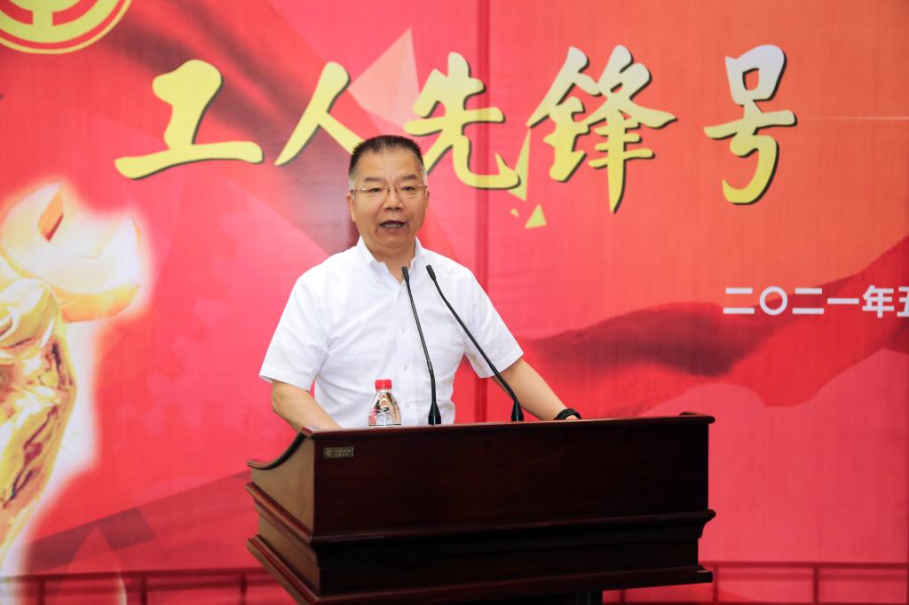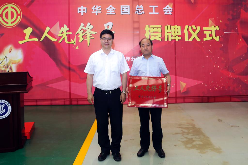 陕西省总工会党组副书记、副主席兰新哲为我校“全国工人先锋号”授牌