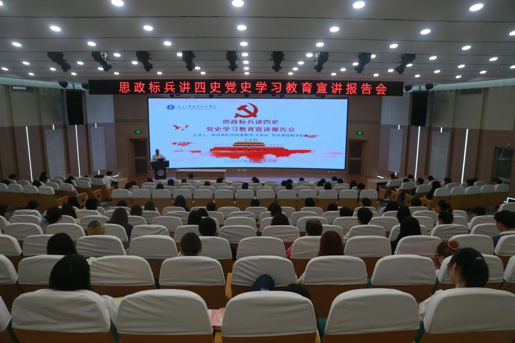 为庆祝中国共产党成立100周年,充分发挥思政课“标兵”的示范引领作用,深入推动以党史为重点的四史学习教育走深走实,5月28日上午,由宣传部举办的“思政标兵讲四史”宣讲报告会在学术会堂正式开讲,我校“红色精神宣讲团”成员、陕西高校思政课教学标兵获得者王永利副教授作了宣讲,部分师生代表参加了报告会。