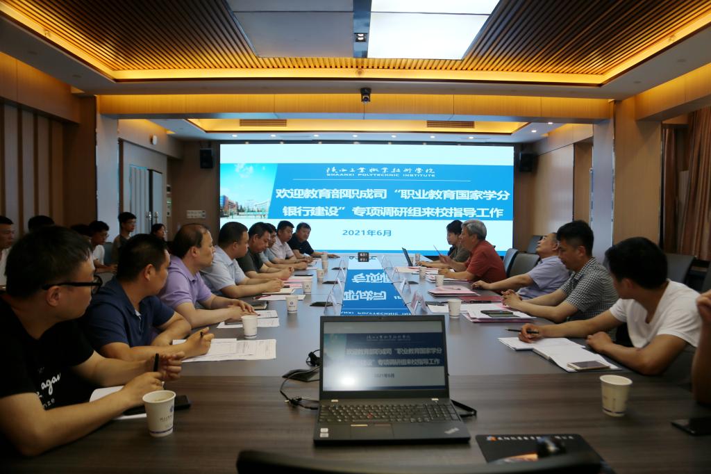 另外,此次教育部职成司“职业教育国家学分银行建设”专项调研在陕调研工作由专家座谈会和实地考察两部分组成。6月2日上午,包括我校在内的5所高职院校参加了在陕西工商职业学院召开的专项座谈会。我校参会人员就职业教育国家学分银行建设情况向专家组进行了汇报,并与其他兄弟院校进行了交流。