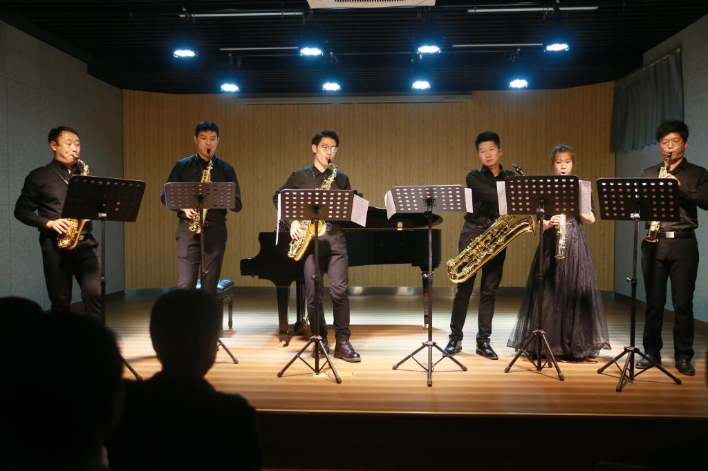 聘任仪式结束后,在美育部部长付胜利的致辞中音乐会拉开了帷幕。首先以中音板胡《秦腔曲牌》、高音板胡《花儿与少年》开场,其曲调高亢悠扬,淳朴清新。女声独唱《如梦令》《越人歌》向观众展示着我国古诗词阳春白雪式的唯美典雅。萨克斯六重奏《掀起你的盖头来》将西洋乐器与东方美完美融合,别具一番风格。《红旗颂》的演奏激荡着观众心中的家国情怀,将晚会推向了高潮,获得连连掌声。选自著名歌剧片段的《女人善变》《两地曲》展示着歌剧的魅力,极具感染力的歌声引起观众情感共鸣。萨克斯独奏《Saxophone》,活泼的曲调给晚会营造出欢乐愉悦的氛围。具有工院特色的小合唱《我喜欢》青春又充满校园气息。钢琴独奏《a小调圆舞曲》《升c小调夜曲》《The crave》,钢琴优美的音色令观众如痴如醉。最后伴随着一首激昂、高亢的《黄河颂》,将音乐会再一次推向了高潮。