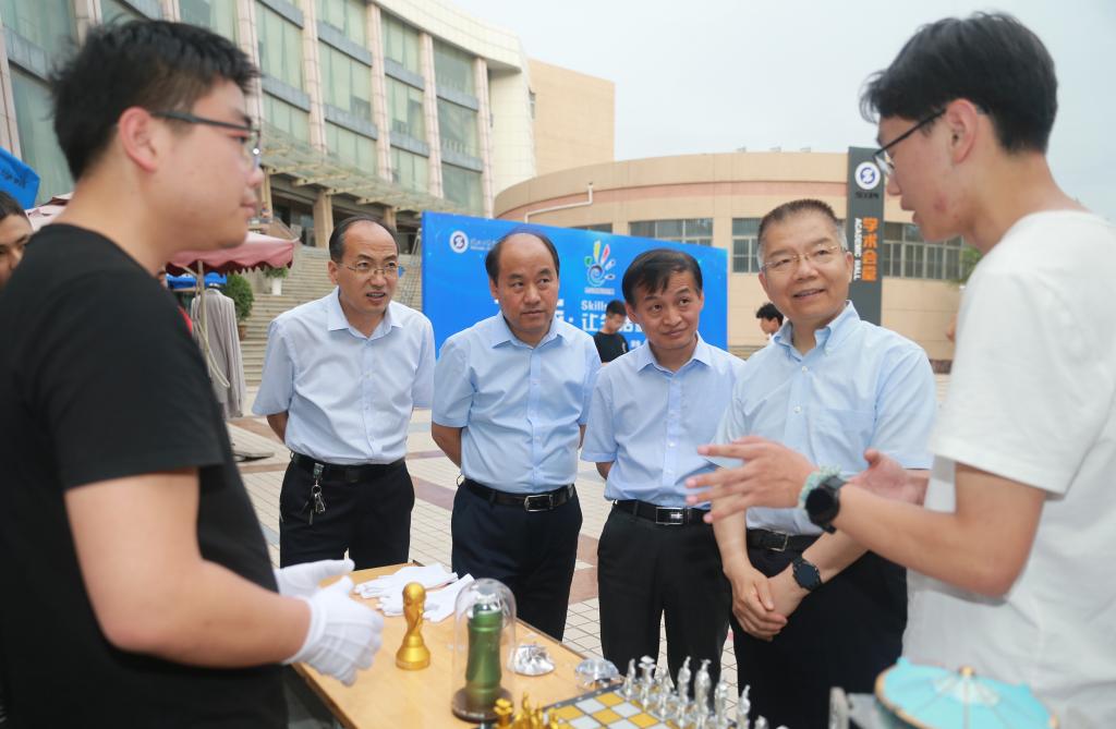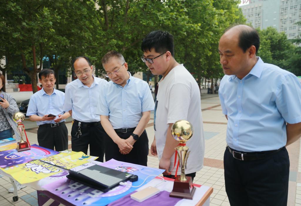 为贯彻落实全国职业教育大会精神,大力弘扬劳动光荣、技能宝贵、创造伟大的时代风尚,5月26日下午,我校举行了职教活动周开幕式,同时举办了以“汲取百年党史,打造技能强国”为主题的科技作品展,党委书记惠朝阳、党委副书记贺天柱、副校长梅创社及宣传部、学生处、团委等部门负责同志亲临活动现场,与同学们亲切交流。