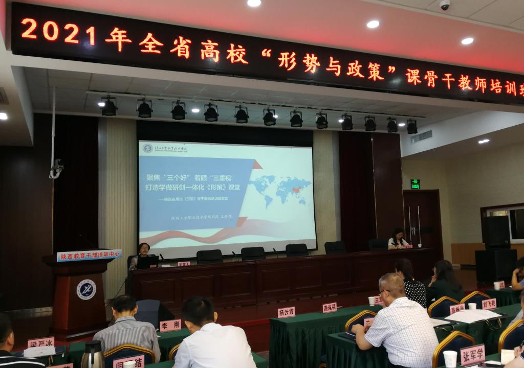 培训还邀请北京大学马克思主义学院院长程美东教授作了题为《北京大学形势与政策课五年经验总结》的报告,中国国际问题研究院中美研究中心秘书长藤建群研究员作了题为《拜登政府对华竞争的路径、手段及其对中美关系的影响》的报告。西安交通大学、西安电子科技大学、陕西师范大学和我校等8所高校代表作交流发言。