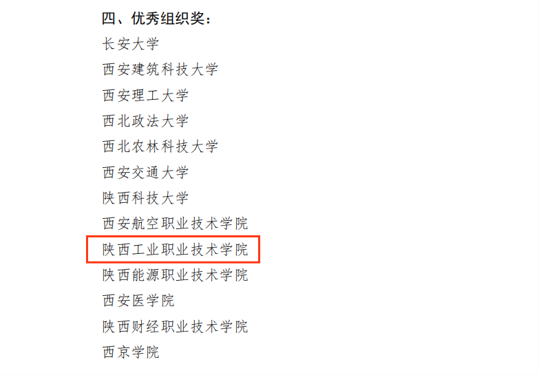 近日,由中共陕西省委党史研究室、中共陕西省委教育工委、共青团陕西省委举办的第二届陕西学校团干部素质能力大赛“百名团干讲党史”高校组比赛成绩揭晓。在本次大赛中,我校电气工程学院教师团干部李瑞欣荣获“专职团干部组”二等奖,财经与旅游学院学生团干部高至辰荣获“学生团干部组”二等奖,团委副书记薛媚荣获“高校团委书记组”优秀奖,我校荣获“优秀组织奖”荣誉称号。本次省赛以“百名团干讲党史”为比赛内容,通过视频展示的方式进行,分为高校团委书记组、专职团干部组和学生团干部组,共有47名高校团委书记、106名专职团干部和72名学生团干部参赛。经过评审,最终产生164名获奖个人和13个优秀组织单位。