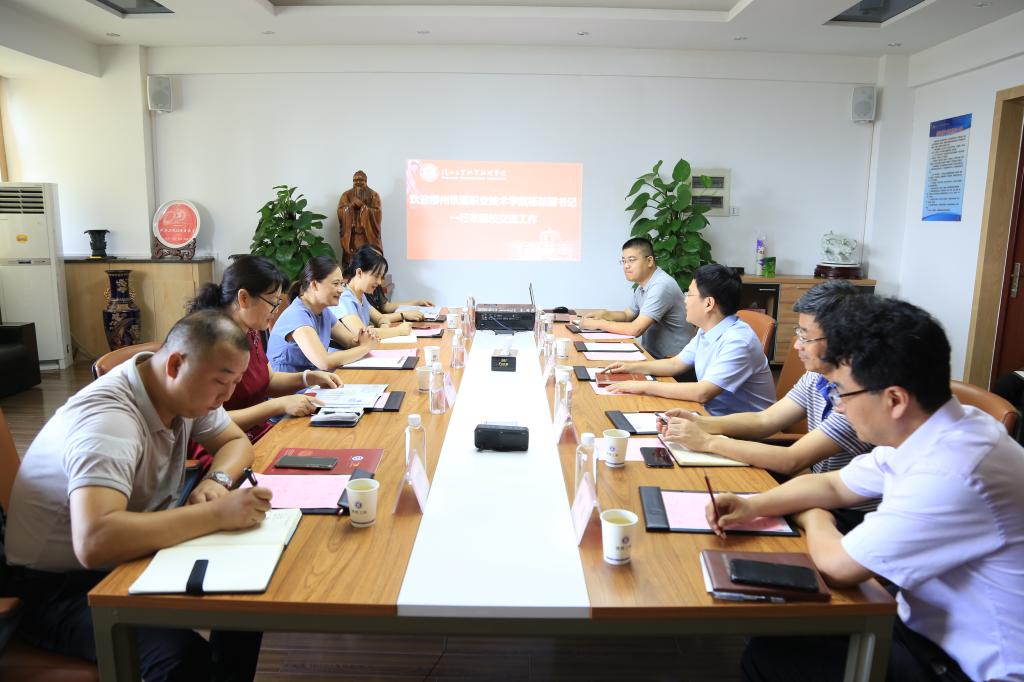 7月7日上午,柳州铁道职业技术学院党委副书记杨喆、人事处处长颜菲、学生处处长熊辉、人事处综合科科长黄沛兰、学生处学生科科长汤宏伟一行5人来我校交流工作。我校党委副书记田昊、发展规划处处长杨建民、人事处处长殷锋社,学生处处长郝军,人事处副处长姚海伟等相关部门负责同志在崇文楼九楼第二会议室与来访嘉宾进行了交流座谈,座谈会由党委副书记田昊主持。