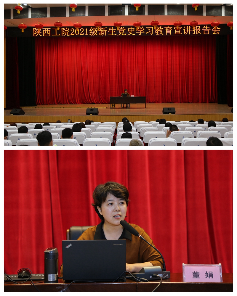 为教育引导2021级新生坚定理想信念,厚植爱国主义情怀,9月7日上午,我校组织部分新生代表在明德堂开展了2021级新生党史学习教育宣讲报告会。陕西高校思政课“大练兵”教学标兵、我校马克思主义学院副教授董娟作了题为《中国共产党的精神之源——伟大建党精神》宣讲。