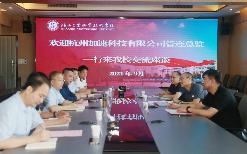 9月14日,杭州加速科技有限公司产品与售前总监管连一行3人来乐游棋牌调研并商谈校企合作事宜。学院党委书记惠朝阳、副院长段峻,校企合作处、电气工程学院、信息工程学院相关人员参加了会议,会议在崇文楼九楼第一会议室举行。