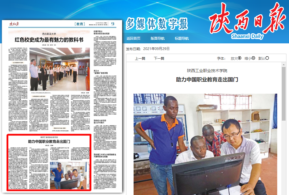 陕西工业职业技术学院面向海外本土人才培养的海外学院建设、人才培养体系建设、课程建设、教材编写、工业汉语教学、留学生培养、海外本土员工技能培训、专业质量体系建设等方面开展了近40项课题研究,形成了一批理论成果,为我国职业教育“走出去”提供了理论和经验指导。