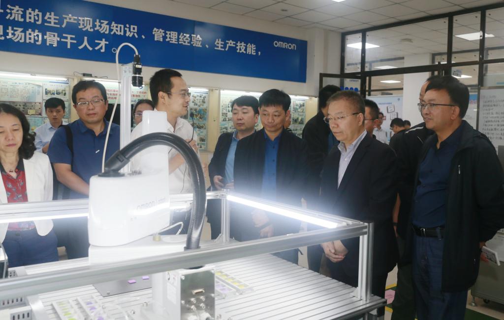 调研组一行在党委书记惠朝阳陪同下参观我校欧姆龙实训中心