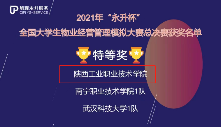 11月13日,2021年“永升杯”全国大学生物业经营管理模拟大赛总决赛落下帷幕,我校商贸与流通学院帅珍珍、李倩老师指导,杨浩楠、沈甲华、郭英骁三位学生组成的参赛队在本次总决赛中以总分第一的成绩斩获团体特等奖。
