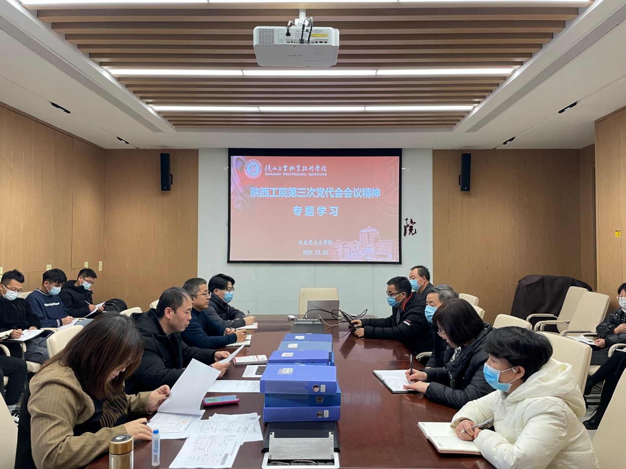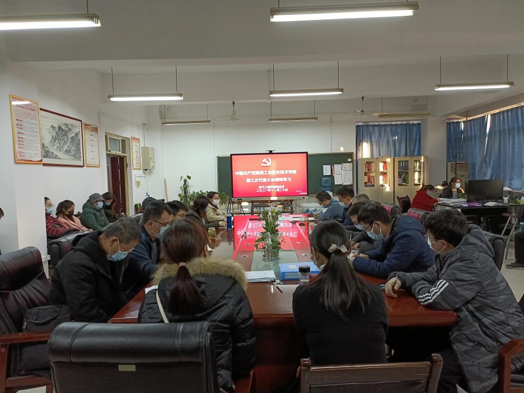 12月17日下午,材料工程学院在行知E511会议室,召开了学习学校第三次党代会精神专题会议。会议传达了学校第三次党代会精神,重点学习了党委书记惠朝阳代表中共陕西工业职业技术学院第二届委员会向大会做的《聚焦内涵式发展、聚力高质量提升,为建设中国特色、世界一流职业大学而接续奋斗》报告、纪委书记康强同志代表中共陕西工业职业技术学院第二届纪律检查委员会做的报告,号召广大教师要认真学习领会学校第三次党代会精神,明确学校未来发展目标,立足工作岗位,为学校十四五发展贡献力量。