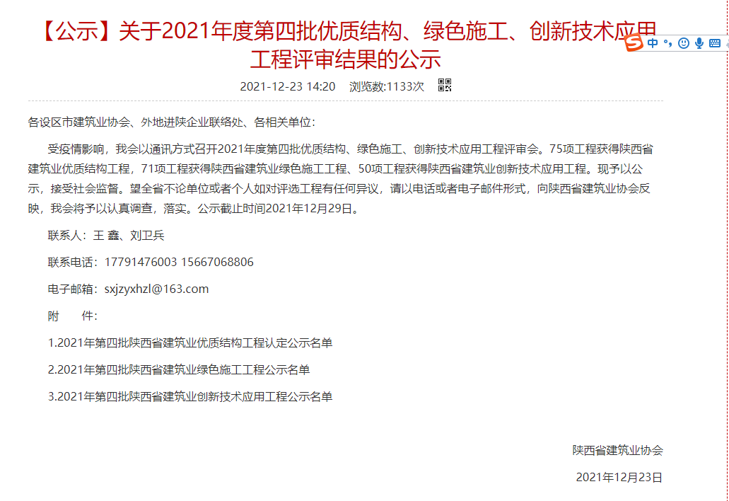 据悉,按照《陕西省建设工程长安杯奖评选办法》(陕建发〔2016〕377号),房屋建筑工程项目获得“省级文明工地”称号、省建筑优质结构工程是申报陕西省建设工程长安杯奖的必备条件。