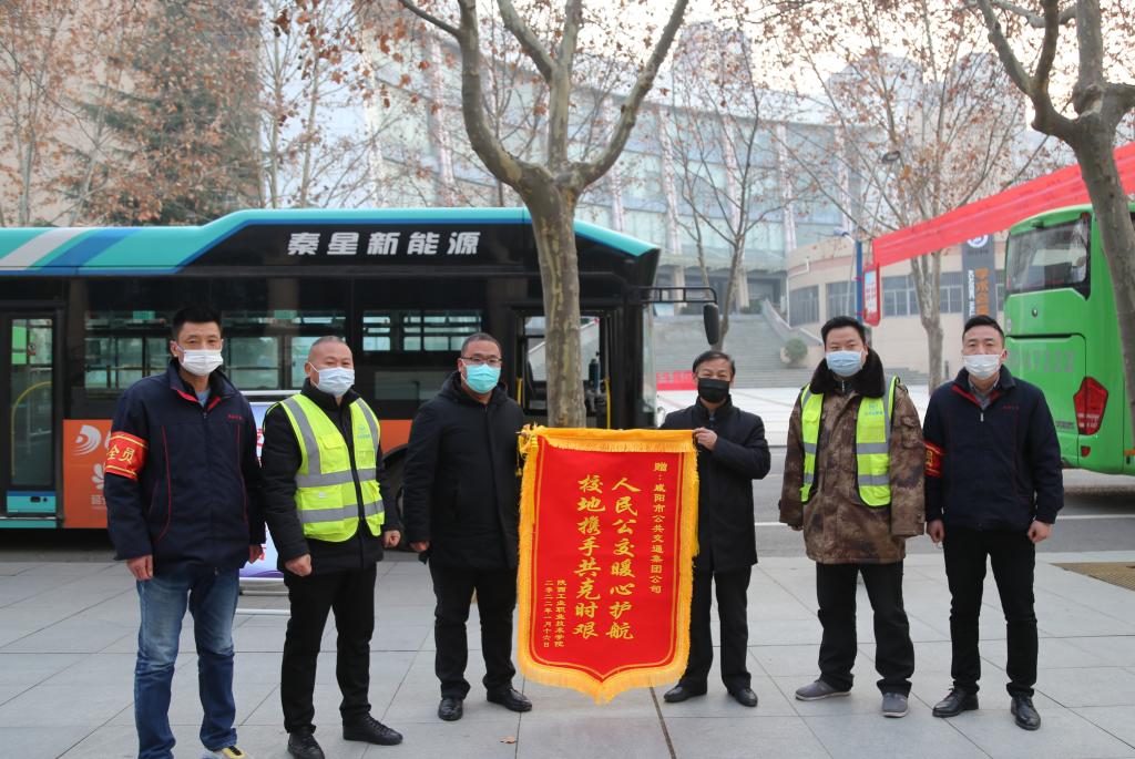 党委副书记贺天柱代表学校向咸阳市公共交通集团公司赠送锦旗