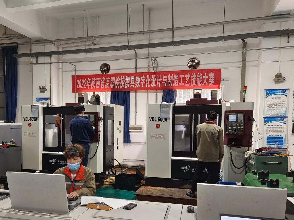 4月7日下午至4月9日,2022年陕西省高等职业院校技能大赛“模具数字化设计与制造工艺”赛项在我校模具技术实训基地举行。本次竞赛由陕西省教育厅主办,我校承办。来自陕西国防工业职业技术学院、西安职业技术学院以及我校的12名选手参加了比赛。