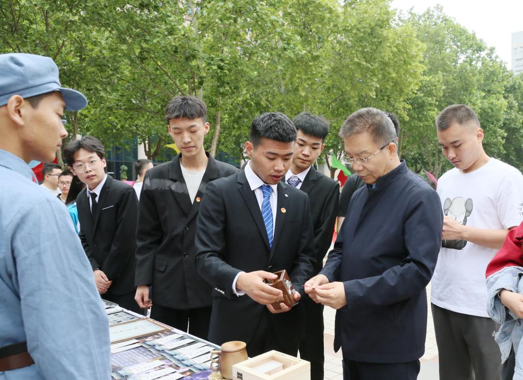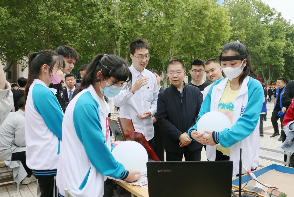根据学校2022年“职业教育活动周”通知安排,5月9日-10日下午,由校团委主办、社团联合会承办,20余个学生社团共同参与的“技能:让生活更美好”技能展示活动,在图书馆广场举行。此次技能展示活动,聚焦五育并举,按照思想政治类、学术科技类、创新创业类、文化体育类等类型划分展示区域。党委书记惠朝阳,校长刘永亮,党委副书记、纪委书记康强,党委副书记贺天柱、田昊,副校长梅创社、段峻及宣传部、团委等部门负责同志亲身融入学生社团技能展示活动,观看各个学生社团技能展示,体会不一样的社团风采。