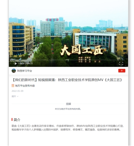 我校原创MV《大国工匠》登上央视频、学习强国等平台