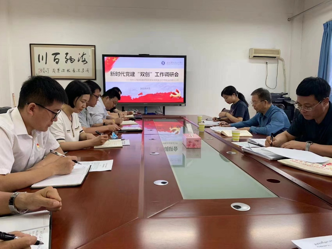 在材料工程学院,党总支书记郝平从样板支部建设进展、存在的主要问题、下一步工作举措等方面进行了汇报,重点对样板支部建设重点任务“锤头熔基”“镰刀熔淬”“旗帜熔炼”“品质熔创”“匠才熔铸”“熔X”进行了详细说明。