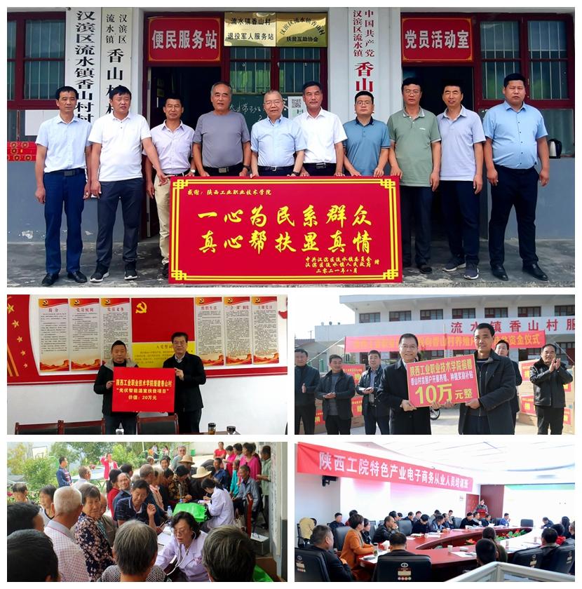 近年来,我校始终贯彻中省关于脱贫攻坚与乡村振兴战略的总体部署,强化责任担当,立足教育教学资源优势,动员广大师生积极参与脱贫攻坚与乡村振兴建设。学校成立乡村振兴领导小组,校领导主持召开专题会议、深入香山村实地考察、检查指导帮扶工作40余次,出台各类文件、签署帮扶协议等20余份;先后选派9名干部驻村开展帮扶工作;捐赠电脑、打印机、空调等办公设备价值约10余万元;投入近30万元实施养殖种植“奖补”措施。开展电子商务、养殖种植等实用技术培训1000余人次;帮扶香山村发展养殖种植合作社2个,实施土地流转、药材种植1000余亩;投入近20万元为香山村安装太阳能路灯54盏;为香山村“爱心超市”捐赠物资10余万元;投入20余万元帮扶香山村建成现代农业种植智能温室大棚和屋顶分布式光伏发电站,目前大棚已扩展到8个占地约2000㎡,截止2021年12月底光伏电站收益161790.06元,为香山村及群众稳定增收创出了新的致富路;我校师生深入汉滨区村镇开展“万名学子扶千村”“三下乡”社会实践活动20余次;2019年扶贫案例《实施养殖种植“奖补”,助推脱贫致富》入选教育部百校百图脱贫攻坚案例集;2019年,在全国高职高专校长联席工作会议年会成果展上,我校参展的“光伏智能温室大棚”及“屋顶分布式光伏电站”扶贫项目,受到教育部职业教育与成人教育司领导的现场点赞;党委书记惠朝阳等合作撰写的论文在陕西省教育系统学习习总书记关于扶贫工作的重要论述征文评选活动中荣获一等奖;我校连续3年荣获“三下乡”暑期社会实践活动省级优秀组织单位。帮扶工作取得显著成效,目前,香山村新农村建设已初具规模,为持续实施乡村振兴战略打下坚实基础。