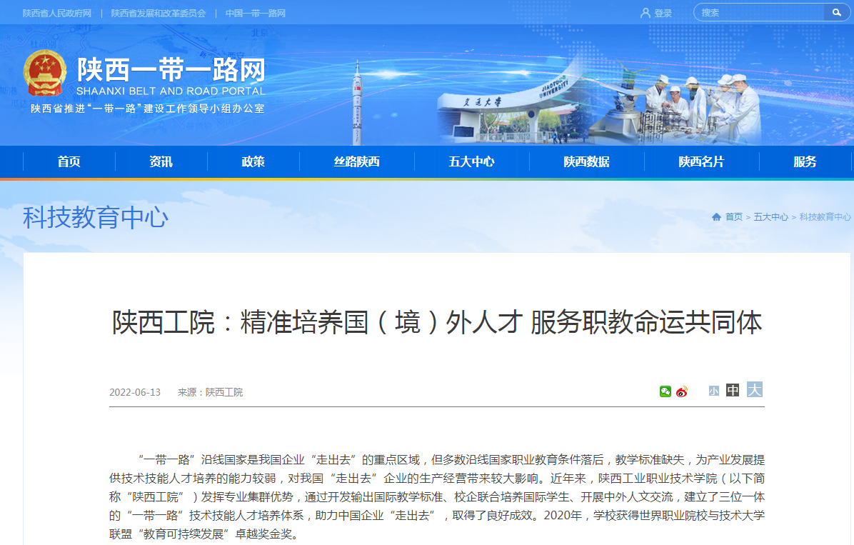 《陕西一带一路网》专题报道我校精准培养国(境)外人才