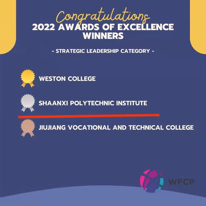 “战略领导力”卓越奖是表彰为世界职业教育改革发展做出示范引领作用的优秀职业学校。近年来,我校积极贯彻落实《国家职业教育改革实施方案》等政策文件,以“双高计划”“提质培优计划”为抓手,紧扣“中国特色、全国领先、国际一流”的发展定位,支撑国家重大战略,服务陕西和西部经济发展、促进产业升级、深化改革创新、提升内涵品质,为现代职业教育高质量发展发挥了示范引领作用。