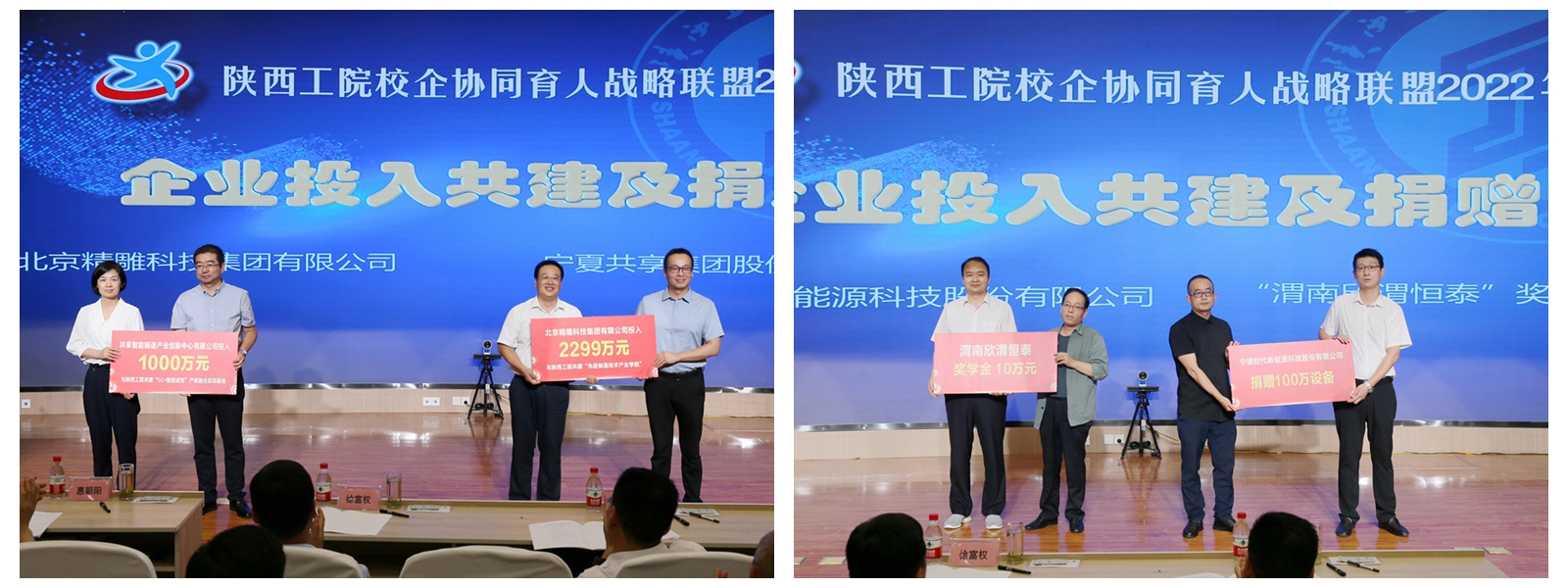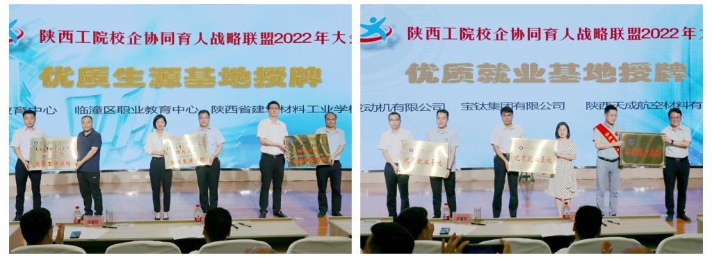 在人才共育环节,开展了企业投入共建及捐赠部分展示。北京精雕科技集团有限公司投入2299万元与我校共建“先进制造技术产业学院”,共享智能铸造产业创新中心有限公司投入1000万元与我校共建“5G+智能成型”产教融合实训基地,罗克韦尔自动化(中国)有限公司、宁德时代新能源科技股份有限公司分别捐赠163万元、100万元设备,渭南欣渭恒泰智能机械有限责任公司在我校设立“欣渭恒泰”奖学金。随后,我校教务处处长张磊解读了“四优计划”,我校相关部门负责人分别为优质生源基地与优质就业基地授牌。