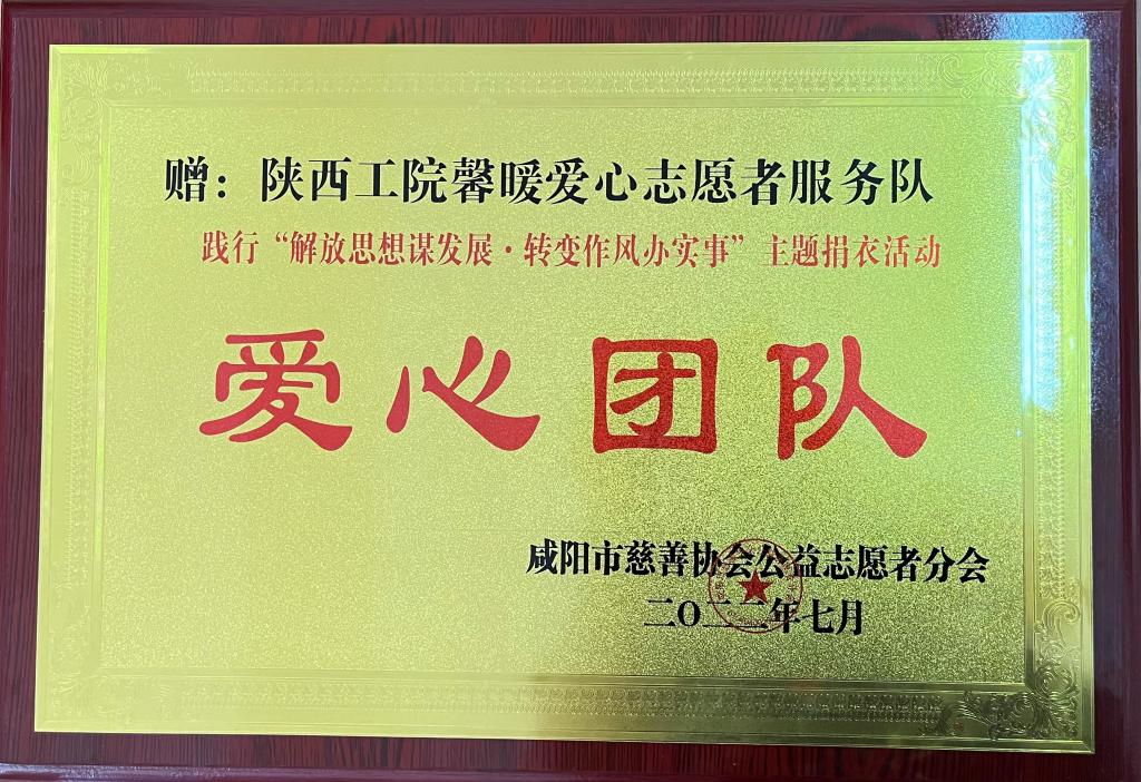 近日,为切实践行“我为师生办实事”精神,咸阳市慈善协会公益志愿者分会,组织开展践行“解放思想谋发展·转变作风办实事”主题捐衣活动,我校馨暖爱心志愿者服务队荣获“爱心团队”荣誉称号。