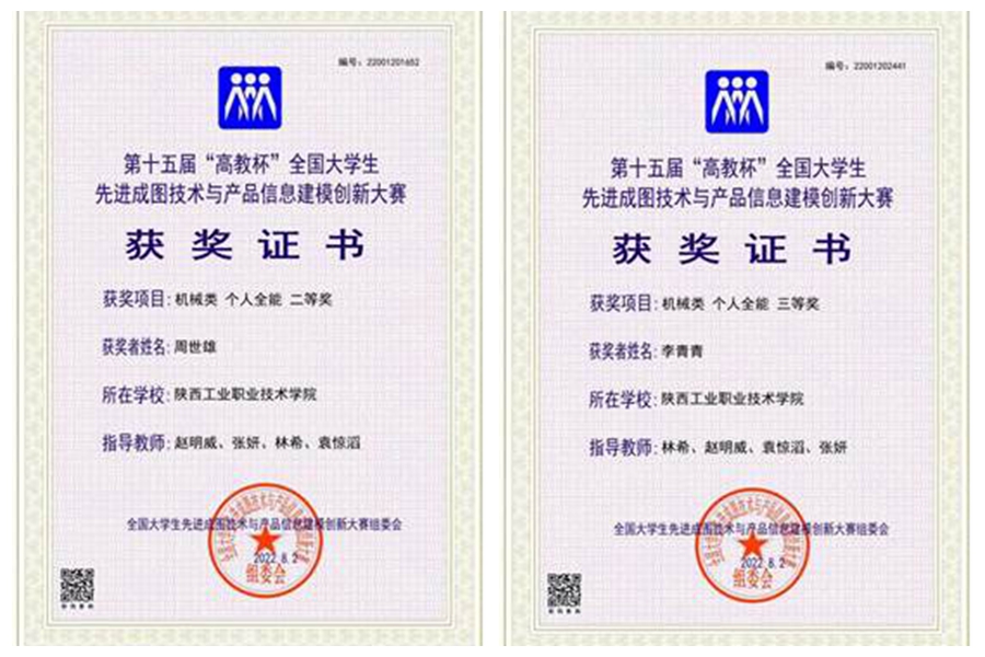第十五届“高教杯”全国大学生先进成图技术与产品信息建模创新大赛决赛于2022年7月29日至8月2日在江苏大学举办。全国大学生先进成图技术与产品信息建模创新大赛是图学类课程最高级别的国家级赛事,被誉为“图学界的奥林匹克”,受到全国各高校的普遍重视。全国总决赛采用线上线下相结合的创新模式进行,学生通过网上云平台在线进行竞赛,考场前后全程监控,考生全程录屏和录像,经过紧张的角逐,最终我校机制2105班周世雄同学取得二等奖,机制2107班李青青同学取得三等奖。
