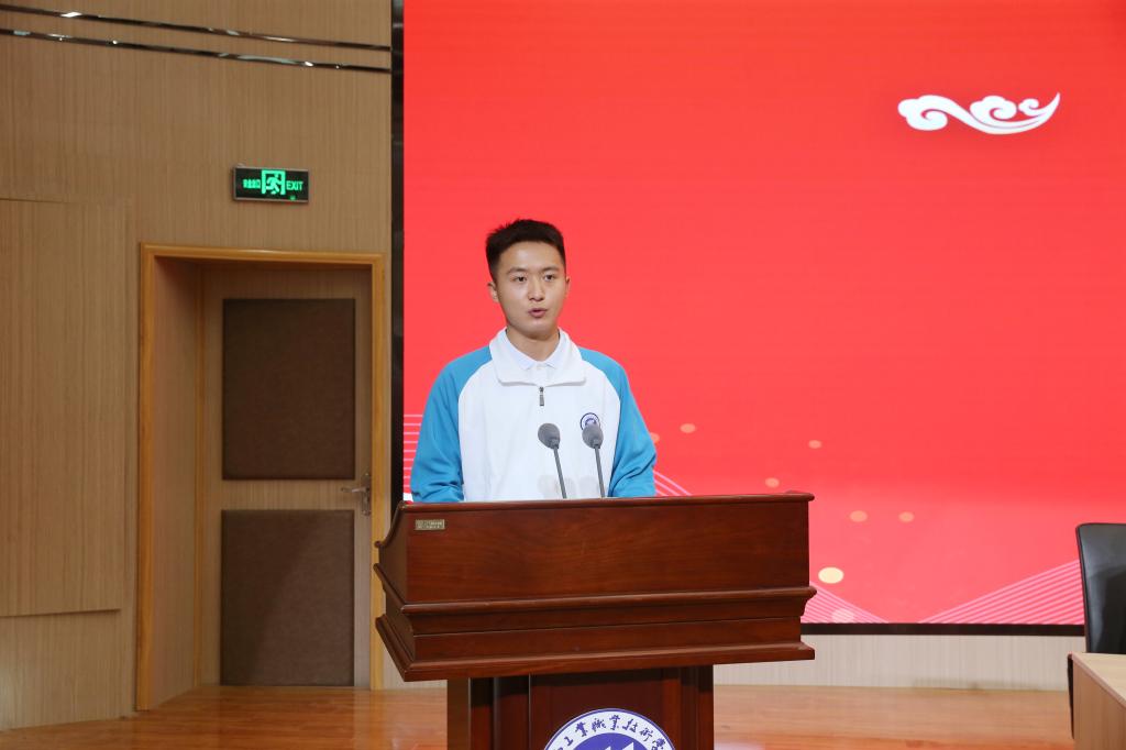 物联网应用技术专业2002班贺妍妍作为在校生代表发言。她结合自己在校求学历程,希望学弟学妹们都可以找到属于自己的青春之路,秉承学校“明德、笃学、精艺、强身”的校训,脚踏实地、不负所望、努力奋进,勇担时代重任,学习技能报国。