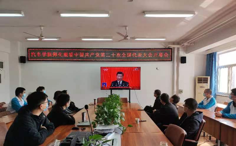 汽车工程学院党总支通过线上线下组织全体党员、师生代表收看了中国共产党第二十次全国代表大会开幕会,认真聆听了党的二十大报告。开幕会结束后,全体党员、师生代表开展了线上线下座谈会并对报告进行了热烈讨论。大家一致表示要坚定理想信念,不忘初心、牢记使命,把对党忠诚作为首要原则;提高政治思想觉悟,继续深入学习、领会、贯彻党的二十大精神,践行育人使命;立足岗位实际,扎实工作,持续创新,为汽车学院发展做出贡献;尽职尽责,奋力拼搏,为实现中华民族伟大复兴的中国梦而贡献自己的力量!
