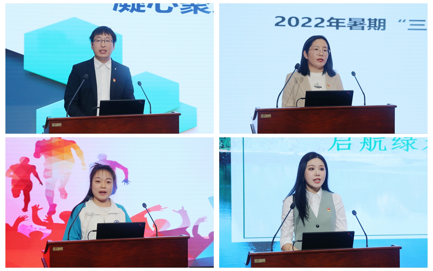 在交流环节,获奖代表电气工程学院辅导员赵松、汽车工程学院辅导员常雪娇、机械工程学院辅导员王凯悦、质检2101班张杏杏同学分别作为“走进企业”优秀调研团队、“走进学生家庭”优秀调研报告、“走进社会”优秀服务队和优秀指导教师代表作了主题为《凝心聚力访企业,踔厉奋进谋发展》《家校联动促成长,资助育人铸希望》《追寻红迹赓续薪火》《启航绿水青山之路传承生态文明精神》的交流发言。