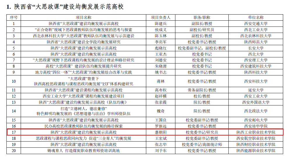 据悉,此次关于设立陕西省“大思政课”建设试点项目旨为深入学习贯彻党的二十大精神,认真落实省第十四次党代会精神和省委第21次常委会会议要求,进一步推进全国“大思政课”建设综合改革试验区陕西省试点建设,省委教育工委、省教育厅在全省教育系统组织开展了陕西省“大思政课”建设试点项目申报工作,经各地各校推荐、专家评审、会议研究,决定设立陕西省“大思政课”建设试点项目144项。