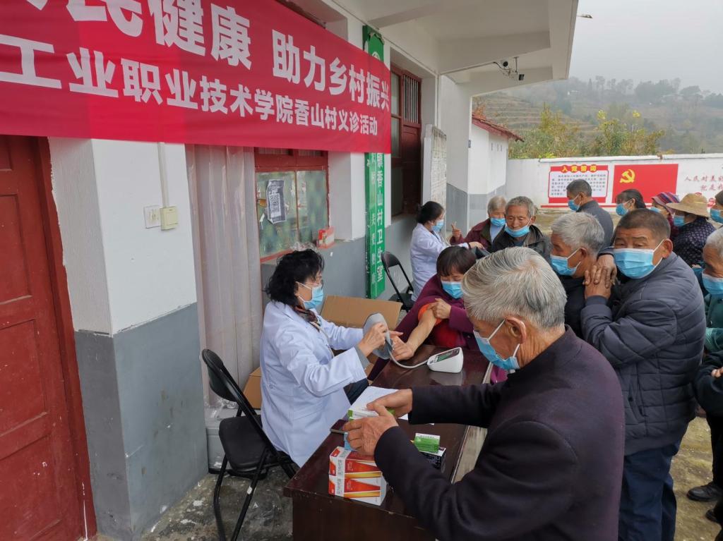 同日,学校在香山村举行义诊活动,前来寻医问药的村民们在村委会广场前早早等待专家们的到来。义诊期间,医务人员充分发挥了诊疗专长,为80余名村民把脉问诊,耐心解答患者提出的问题,并为他们制定治疗方案,免费发放药品。
